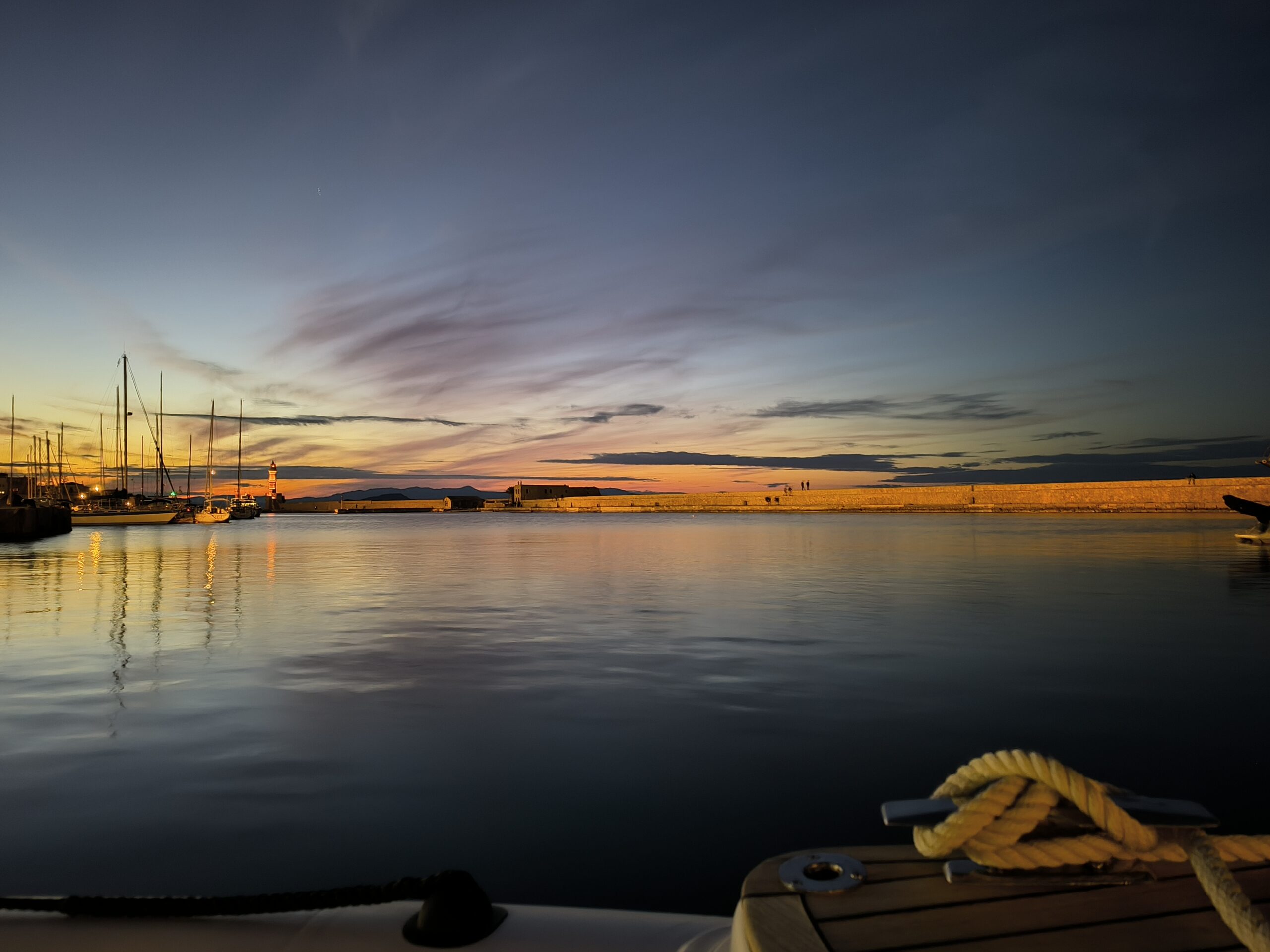 With your eyes full of wonder, now is the time to enjoy some local delicacies and a special wine as we glide back towards the lights of Chania harbour at night
